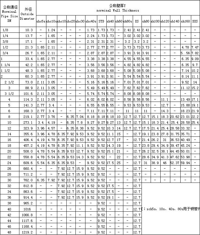 ANSI/ASME B36.10/B36.19壁厚表